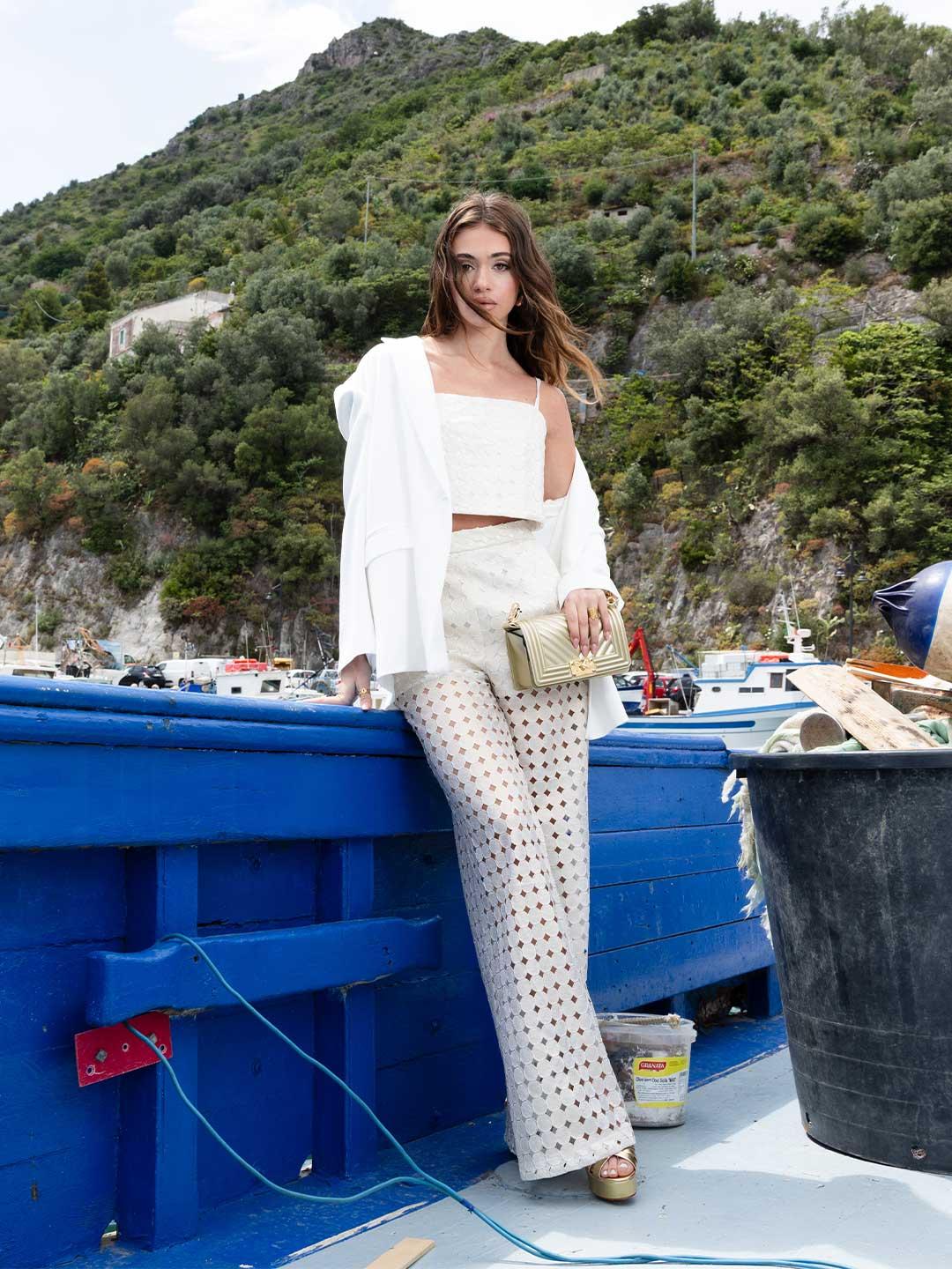 Silence Circles pantaloni panna traforato